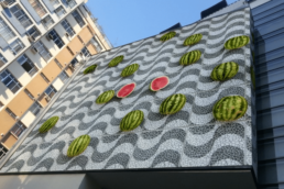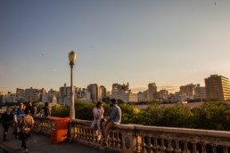 Projeto Circuito Urbano de Arte (Cura) inaugura mirante de arte urbana, com quatro murais pintados nas fachadas cegas de prédios do hipercentro, vistos da rua Sapucaí